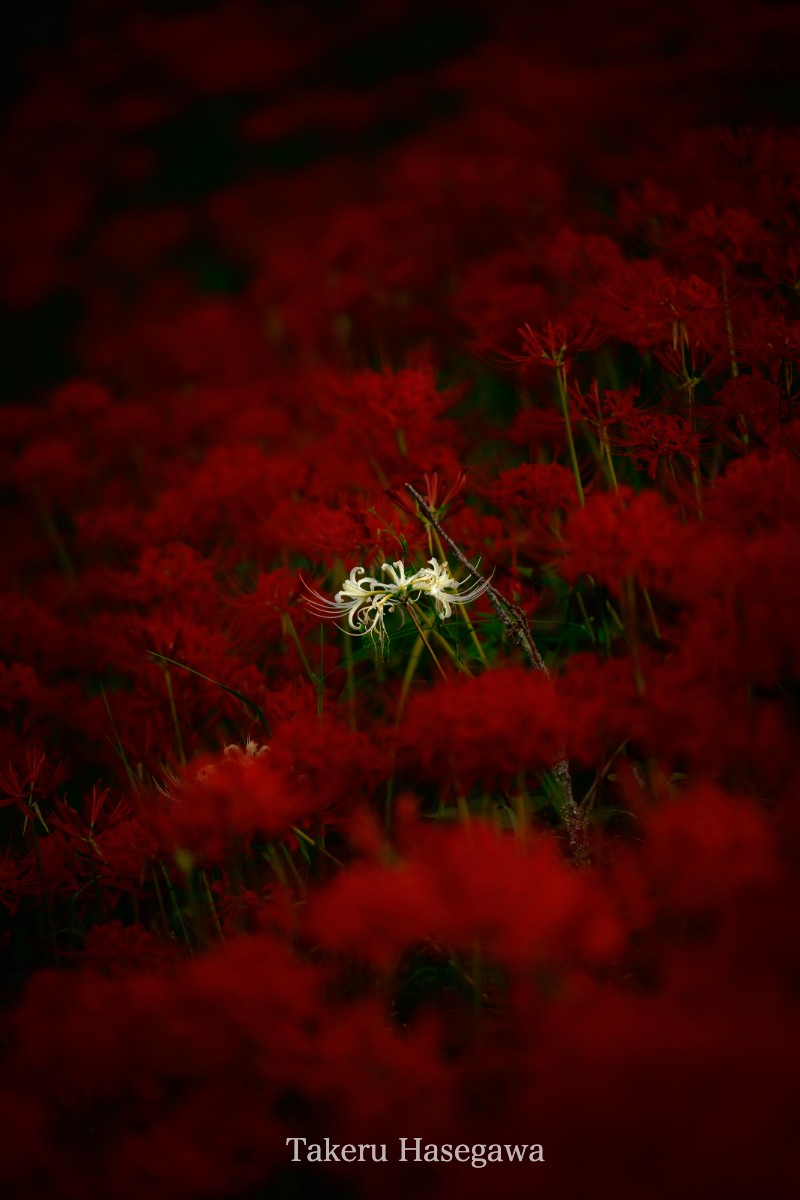 🌸曼珠沙華の海に咲く、たったひとつの白