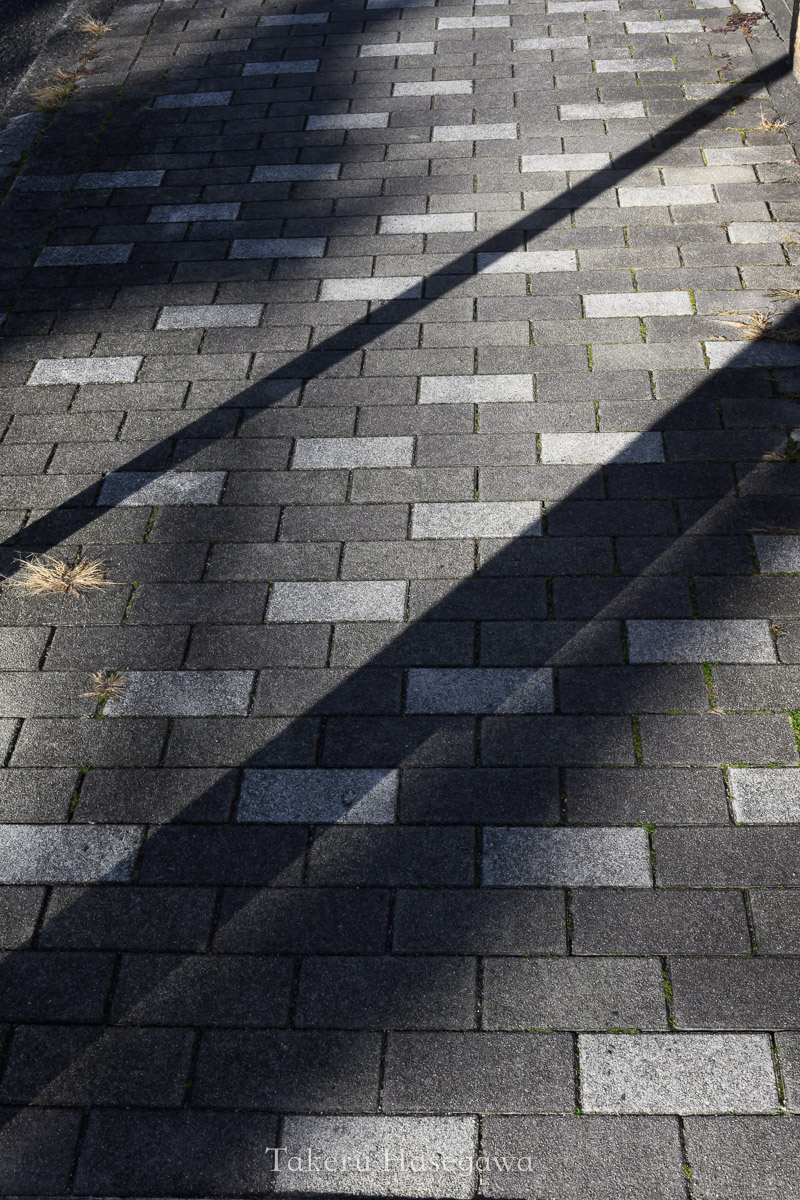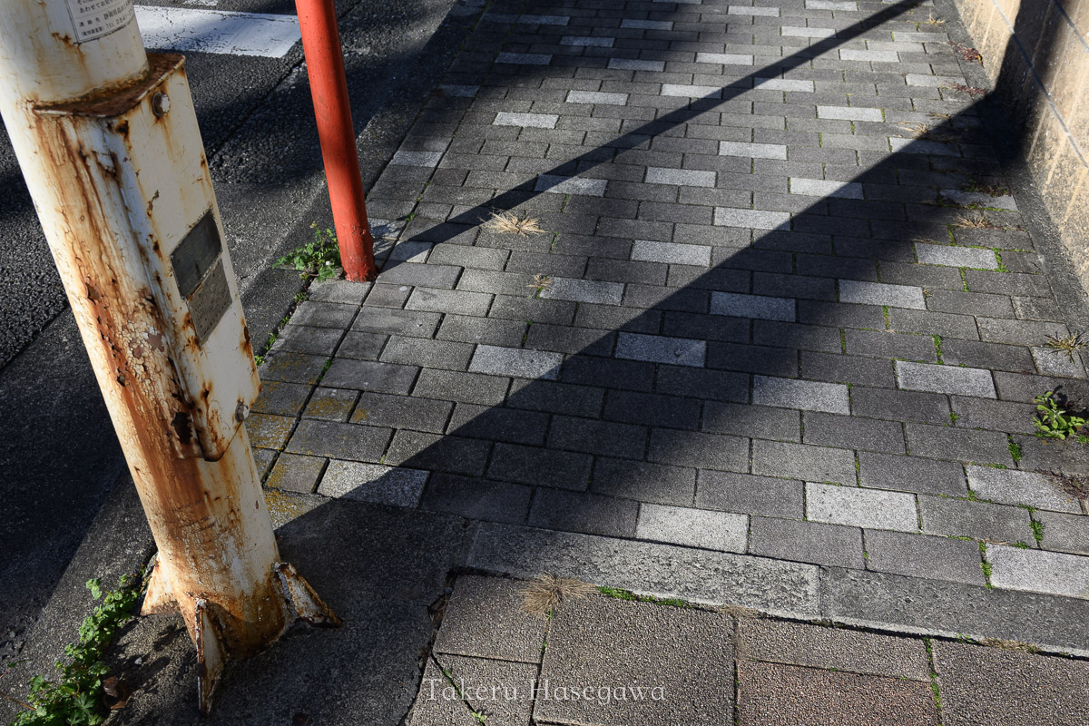奥と手前の電柱の影が上手い具合に重なった結果、片側だけボケるといった見え方になっていました。