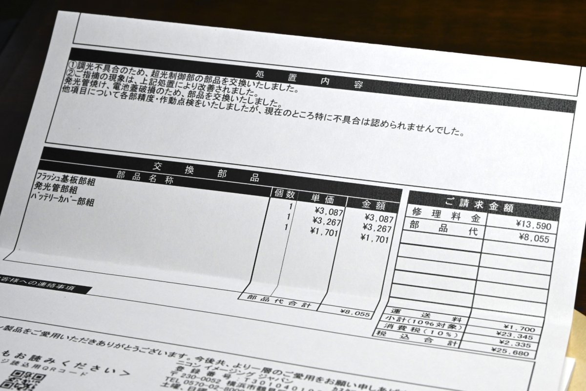故障内容は、M発光では問題ないものの、TTL発光が微弱な発光のみで調光されない。